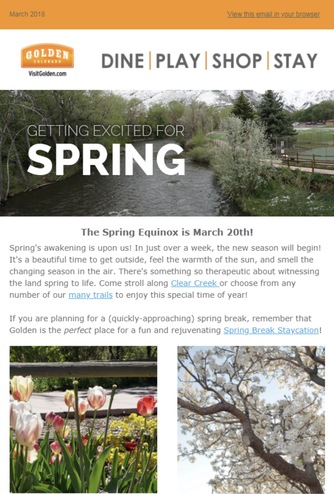 Newsletter for a destination marketing organization for the City of Golden.